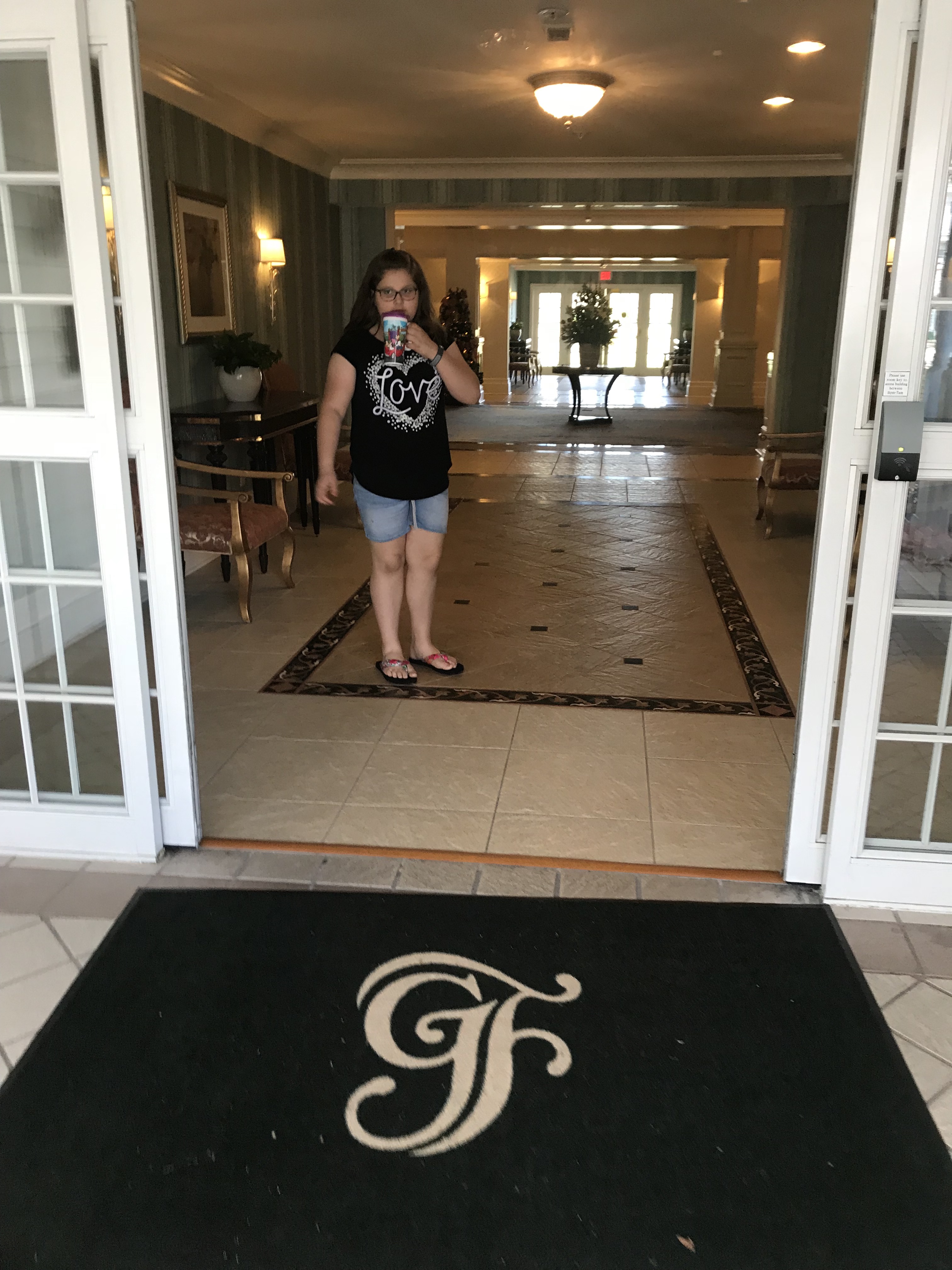 The Victorian Style buildings and lush greenery is a prince and princess dream! As you walk up the property you hear the sounds of the transportation Monorail up on the 2nd floor.When you get to the entrance you will have friendly guest service staff to welcome you to the hotel and a view of a Cinderella carriage is seen before walking in the Lobby. The black Carpet ground mat when you come in has a large gold scrolling of GF and the smell of the Floridian is so nice and clean! I love the smells of the deluxe resorts in Disney, they use a freshener system that is very lovely, inviting and not over powering. The lobby of the GF is so beautiful with her huge chandeliers and 5 levels of beauty. The Victorian architecture and crown moldings, beautiful greenery, a grand piano, a birdcage elevator, furniture that is luxurious, makes this a grand view!